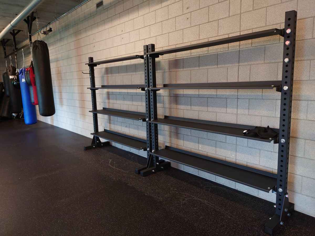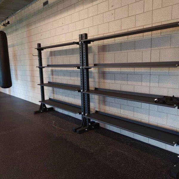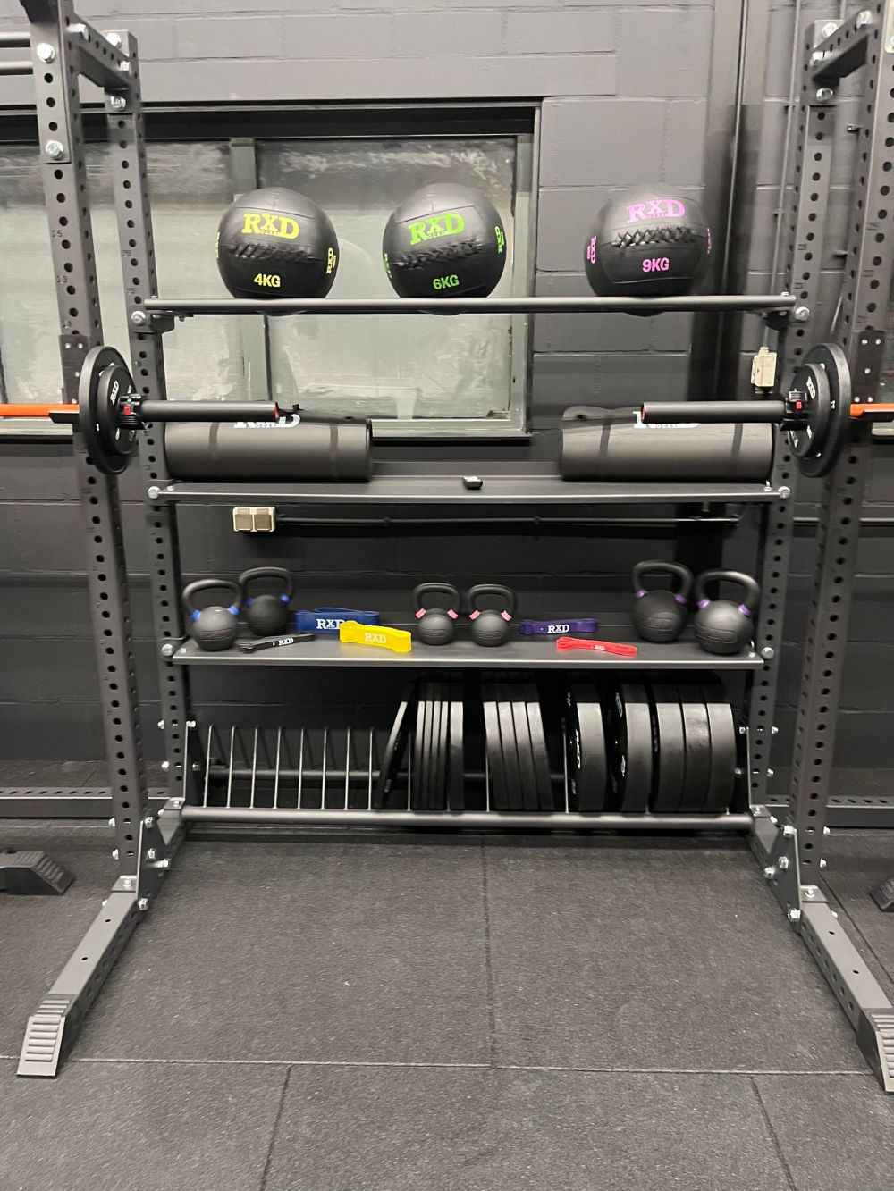 Die RXDGear Dumbbell / KB Storage 180cm dient zur Aufbewahrung von Kurzhanteln, Kettlebells und kleinem Trainingsequipment direkt in einem Rig oder Upright Storage System. Die stabilen Stahlablagen sind vielseitig einsetzbar und können dank flexibler Verbinder horizontal oder schräg montiert werden. Ideal für Fitnessstudios mit platzsparender Rig-Lagerung.