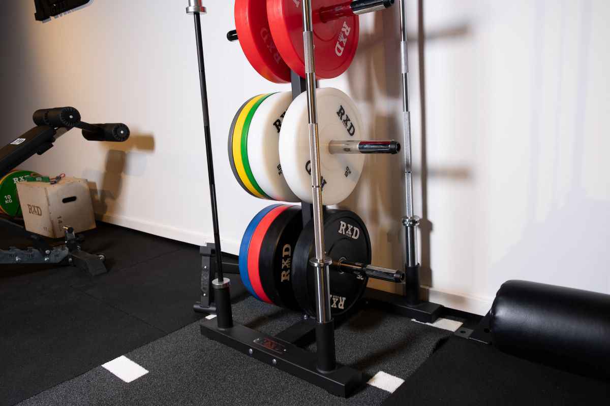 Das RXDGear Olympic Plate & Barbell Rack ist eine kompakte und stabile Aufbewahrungslösung für mehrere Olympia-Hantelscheiben und bis zu vier Langhanteln mit 50 mm Durchmesser.