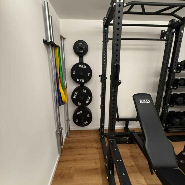 Das RXDGear Wall Mounted Bumper Storage Rack ermöglicht eine platzsparende und ordentliche Aufbewahrung von olympischen Hantelscheiben. Durch die vertikale Wandmontage bleibt die Trainingsfläche frei und organisiert. Geeignet für 50mm Bumper Plates und ideal für Fitnessstudios und Homegyms.